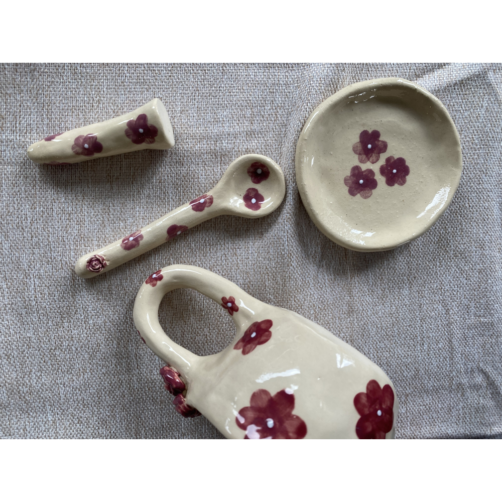 Omdat al mijn producten met de hand worden gekleid, getrimd, gesponsd en geglazuurd, kunnen de items enigszins variëren in vorm en kunnen er kleine onvolkomenheden optreden.