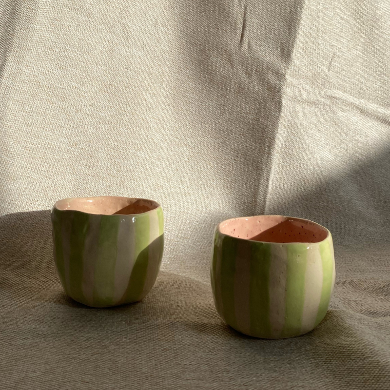 Al mijn producten zijn met de hand gekleid, getrimd, gesponsd, geglazuurd en afgebakken voor steengoed. Hierdoor kunnen de items enigszins variëren in vorm en kunnen er kleine onvolkomenheden optreden.